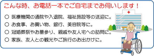 *お迎えに伺うまでの距離が長い場合は、時間制運賃を申し受ける場合があります。